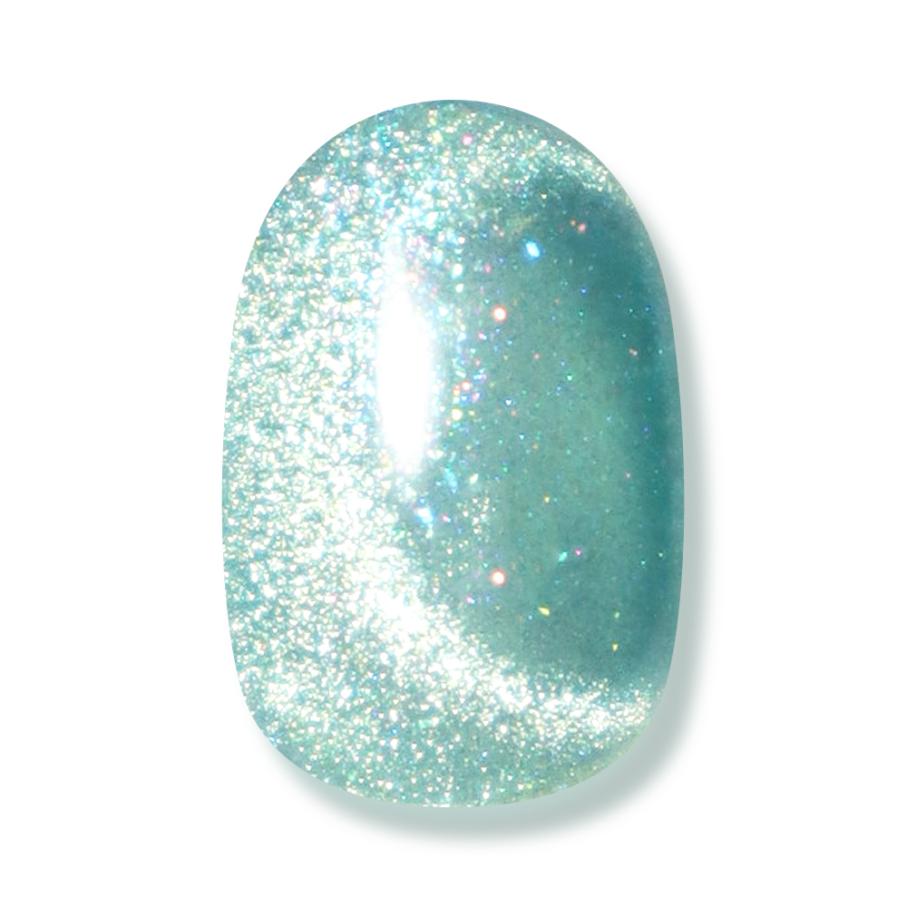 カラーは「Mint Jelly Magnet/みずみずしいミントゼリー」。やわらかなミントカラーに、涼しげなブルーラメがとろけるように輝く。指先にのせるだけで、ひんやりとした透明感が広がるようなカラー。